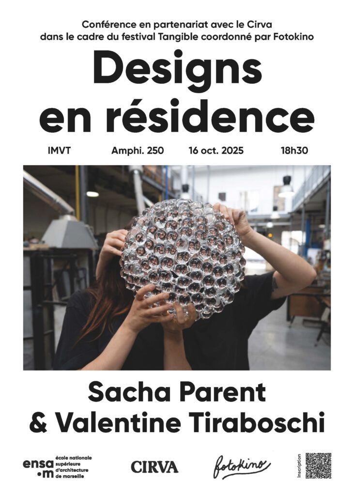 À l’occasion du festival Tangible, qui fédère sur le territoire passionnés, curieuses et professionnelles dans le domaine du design, le Cirva et l’École nationale supérieure d’architecture de Marseille (ENSA-Marseille) organisent une conférence menée par les designers Sacha Parent et Valentine Tiraboschi.