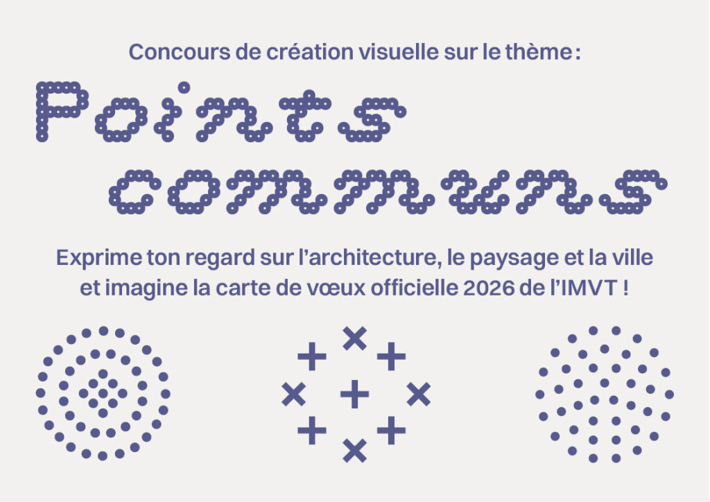 Nous vous invitons à exprimer votre regard sur l’architecture, le paysage et la ville, en imaginant la carte de vœux officielle pour l’année 2026 de l’IMVT sur le thème « Points communs ».