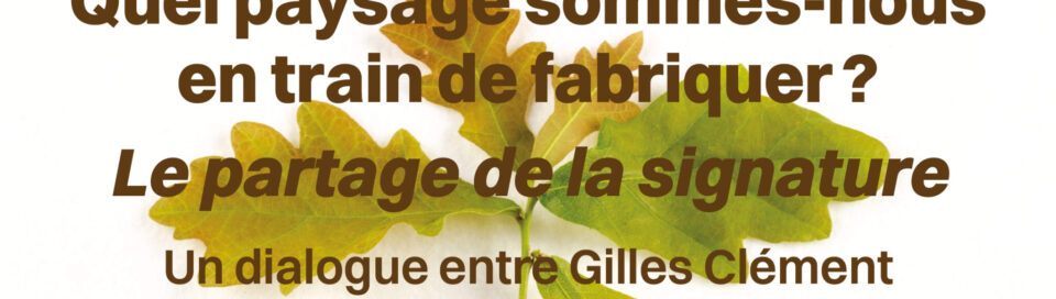 Accueil » Actualités » Inscription à la conférence Conférence « Quel paysage sommes-nous en train de fabriquer ? Le partage de la signature » Un dialogue entre Gilles Clément & Véronique Mure • 09 octobre 2025