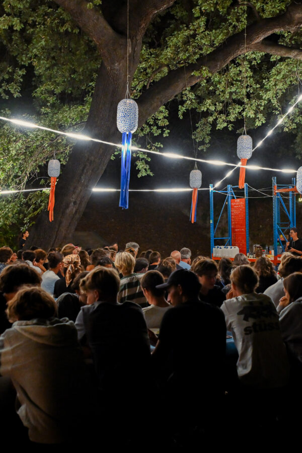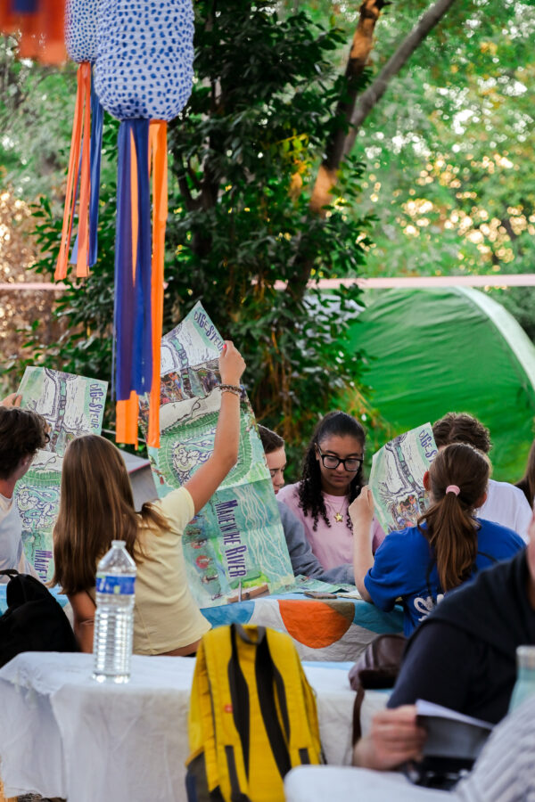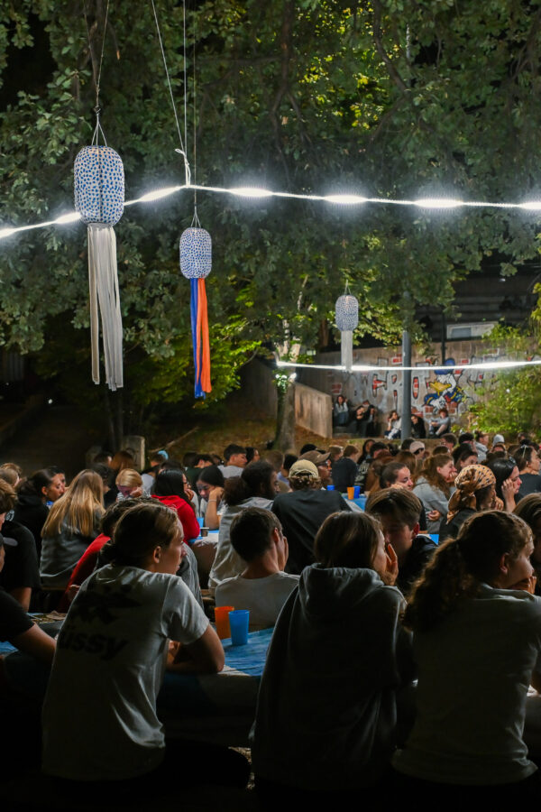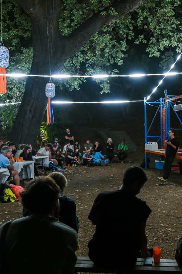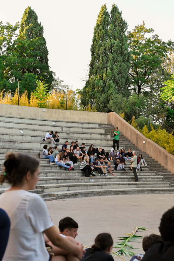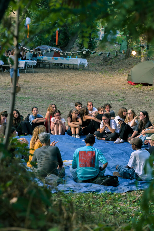 Pour ce voyage le long du ruisseau des Aygalades, faire lien a été le maître mot. D’abord avec le Bureau des Guides et le collectif des Gamarres, qui accompagnaient pendant la marche mais aussi avec d’autres associations du quartier, particulièrement pendant la soirée du bivouac à l’occasion de laquelle tous ont fait communauté en investissant l’espace public, le temps d’une soirée et d’une nuit, avec une conférence de Mathias Rollot, architecte de formation et ancien praticien, maître de conférences habilité à diriger des recherches à l’ENSA de Grenoble.