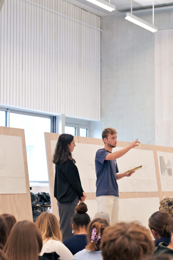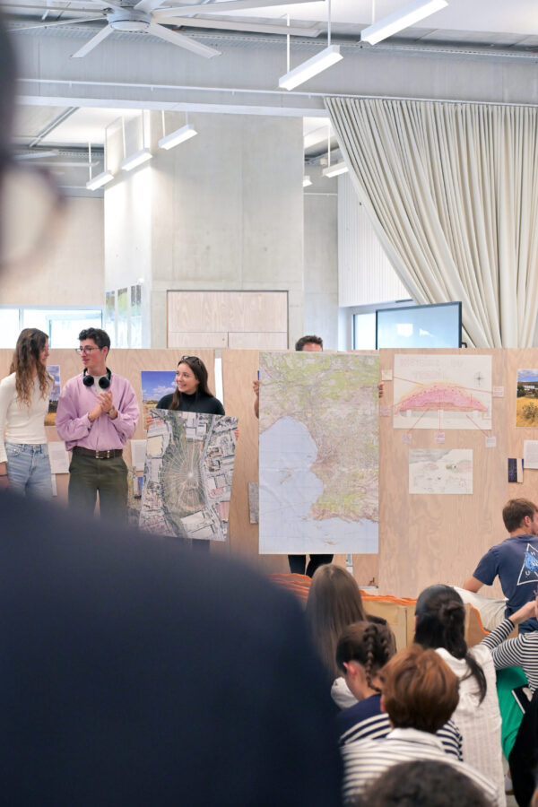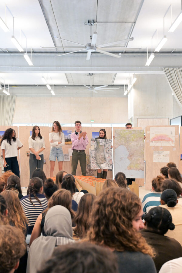 À l’issue de cette exploration collective, chaque studio de projet a présenté à l’ensemble de la promotion un récit du territoire arpenté et le résultat de ses explorations du site de projet, en utilisant divers outils de représentation : cartes, dessins et croquis, relevés, photos … Les étudiants ont restitué leur travaux sur chacun de sites de projet le 9 octobre dernier : dessins, maquettes, des rendus de très haute qualité.