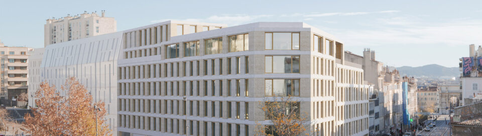 Le chantier du futur campus d’Omnes Education, situé entre la gare Saint-Charles et la Joliette, sur la place Marceau, est en pleine transformation sous la direction de l’agence AT Architectes de Jérôme Apack et Céline Teddé.