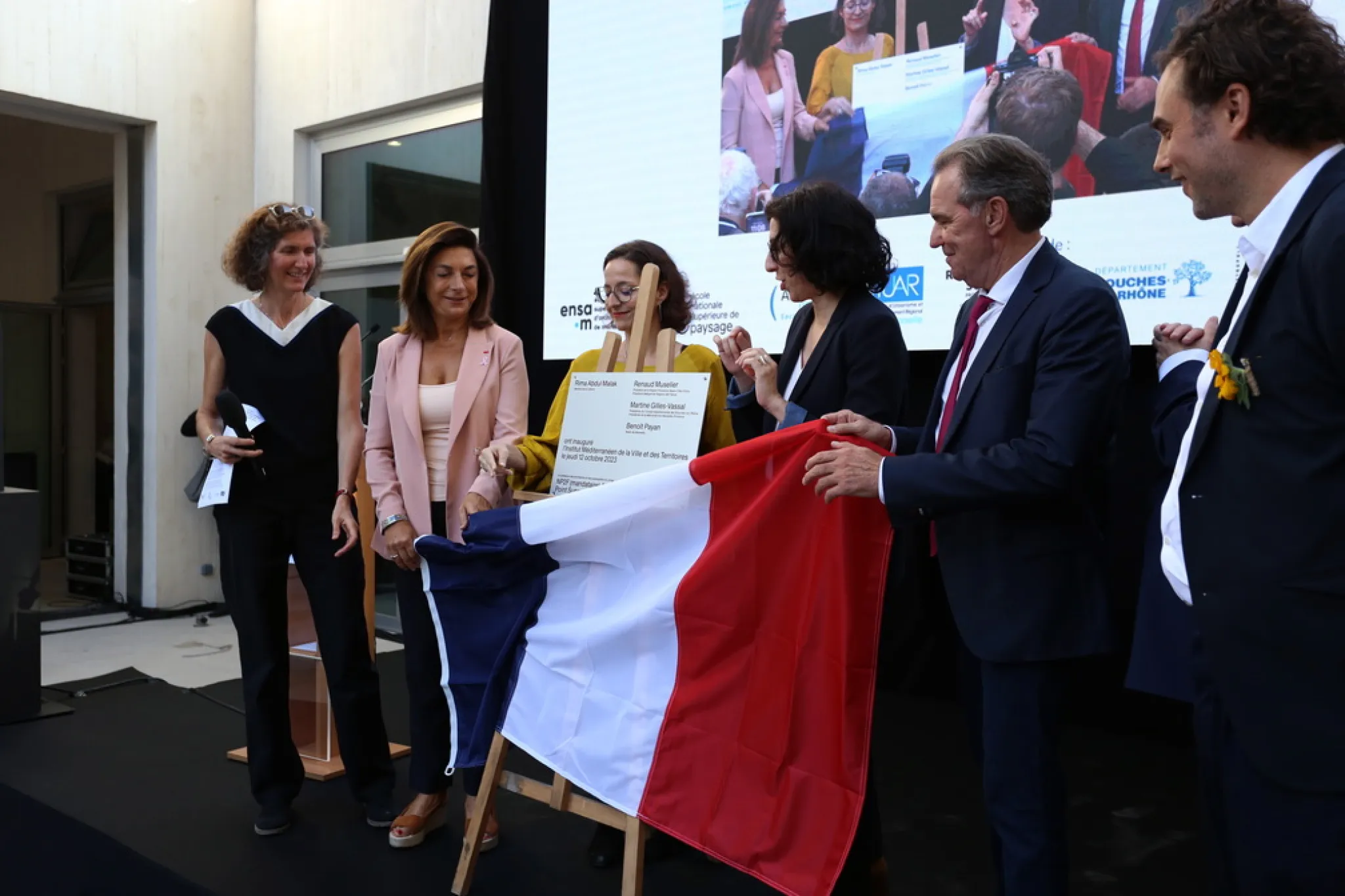 En 2018, l’ensa•m fêtait ses 50 ans d’existence et d’implantation sur le site extraordinaire de Luminy, l’école conçue par Egger est reconnue architecture contemporaine remarquable, puis protégée au titre des Monuments Historiques, en 2025, par le Ministère de la Culture. Une page se tourne. Porté par José Moralès, président du Conseil d’administration de l’école et par Marielle Riche, alors directrice de l’école, le projet de création de l’Institut Méditerranéen de la Ville et des Territoires (IMVT) prend forme. L’équipe de maitrise d’œuvre NP2F est désignée cette année-là. Et en 2023, c’est au cœur de Marseille, près de la porte d’Aix, à proximité immédiate de la Gare Saint-Charles, que l’IMVT, institut unique en Europe, ouvre ses portes. En son sein, trois établissements distincts prônent la transdisciplinarité : l’ensa•m, l’école nationale supérieure de paysage de Versailles-Marseille (ENSP) et l’Institut d’Urbanisme Régional d’AMU / Aix-Marseille Université (IUAR)