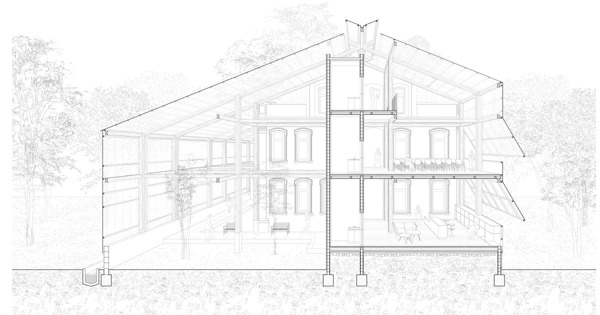 Traduction de la villégiature à Marseille, la bastide marseillaise autrefois très populaire est aujourd’hui un patrimoine rare, en voie de disparition. Dans le site hospitalier de Sainte-Marguerite, la demeure Guis avec son allée de platanes et ses pins centenaires semblent raconter l’héritage d’un ancien paysage bastidaire. Néanmoins ce dernier est en danger puisque un nouveau pôle de recherche devrait prendre racine sur ce même site. Le projet envisage ainsi de proposer un contre-projet, un retour à la lenteur où la réactivation d’un ensemble bastidaire devient facteur de soin. Symbole des notions du domicile et du quotidien, la bastide et sa réanimation s’adresse principalement aux malades en affections longue durée qui voit leur quotidien bouleversé, rythmé par la maladie. L’attention est donc portée d’une part à un patrimoine architectural symbole marseillais, et d'autre part à une population fragilisée, aux besoins d’espaces, de lieux et d’ambiance favorables à la guérison ou au mieux-être. Le projet s'appuie ainsi sur l'histoire et les éléments de la bastide, reconvoqués, transposés et adaptés pour répondre aux besoins des malades en affection longue durée. A l’échelle urbaine , paysagère et architecturale, ce refuge des soins longue durée se développe autour de trois notions, trois usages, organisés du plus public au plus intime et du plus éphémère au plus durable avec : Interagir; Se réfugier et Habiter.